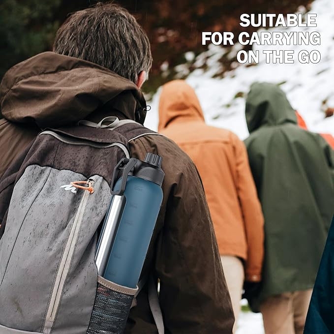 - DURABLE HANDLE & TIME MARKERS- Our premium water bottle with time marker with an ergonomic handle is sturdier than standard designs, ideal for outdoor activities like hiking where it can be securely attached to a backpack. Additionally, our big water bottle features hourly time markers to track daily water intake, supporting your health goals wherever you go.