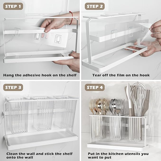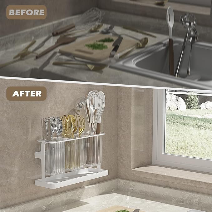 - 【Easy to Install and Clean】Depending on the space, choose whether to stick it on the wall or place utensil holder directly on the countertop.Kitchen utensils holder is easy to clean.No machine washing!