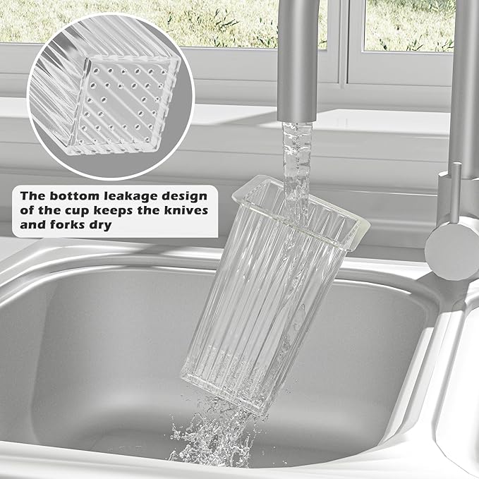 - 【Water Leakage and Water Tray Design】The bottom of the cup has holes in order to facilitate draining and drying, there is a water tray to prevent water from flowing everywhere.Keep kitchen utensils counter dry!Utensil crock makes your home neat!
