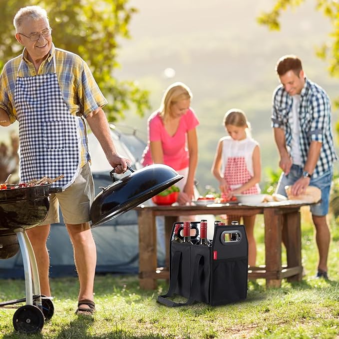 - REMOVABLE DIVIDE DESIGN:Well padded with internal divider for 6 bottles. The separator in the bag is a nice touch to stop bottles hitting against one another,Bottle holder is a safe, hassle-free solution for carrying your favorite beverages and their storage,Great for transporting wine to parties, wine dinners, restaurants, pool or beach parties, picnics, concerts and sporting events.