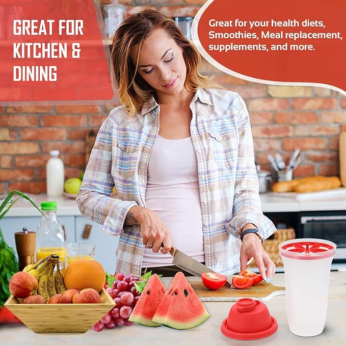 - đ„€ COME IN HANDY WHEN IN THE KITCHEN: Our portable plastic drinking cups with lids are not just for shakes and smoothies. Theyâre great for anyone that likes to cook too! The lids create a leakproof seal, so you can mix up delicious homemade salad dressings and sauces.