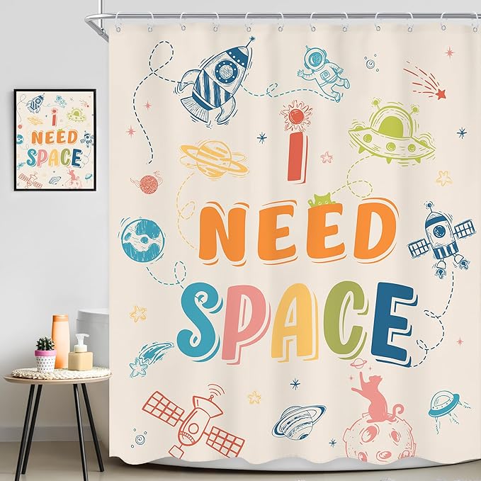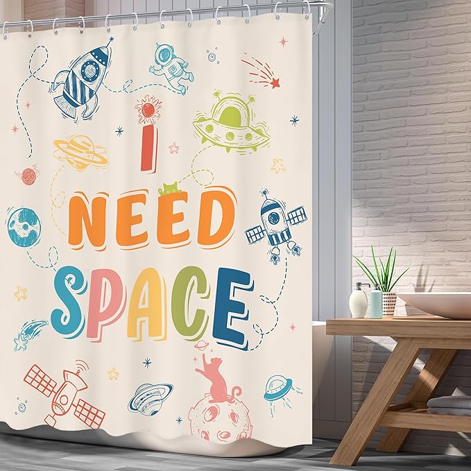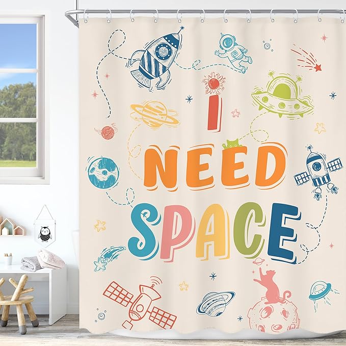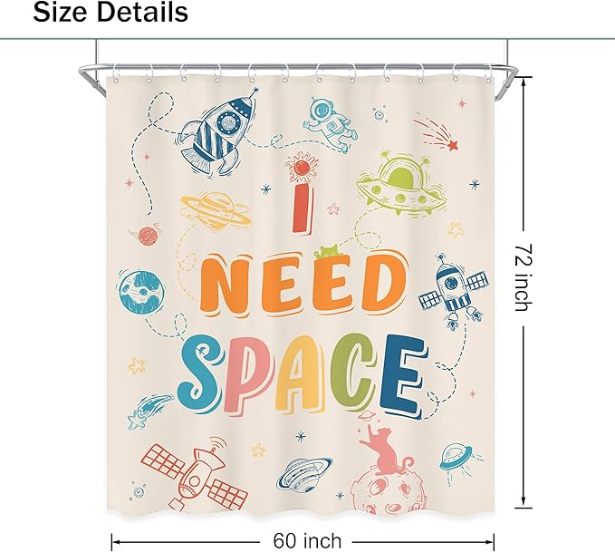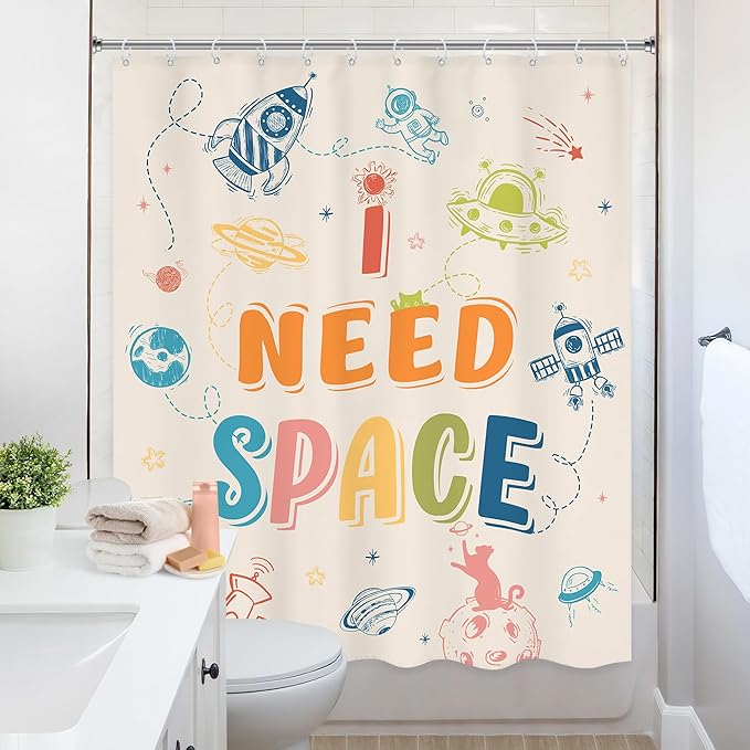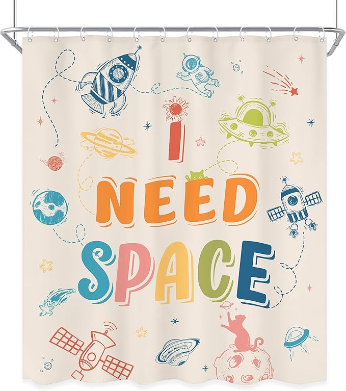 Kids Shower Curtain 60Wx72L Inch Funny Space Quotes Toddler Planet Cartoon Cute Universe Galaxy Boys Girls Nursery Colorful Bathroom Set Bath Curtain Bathtub Accessories Home Decor