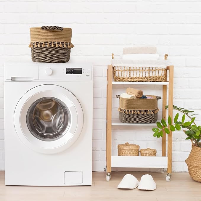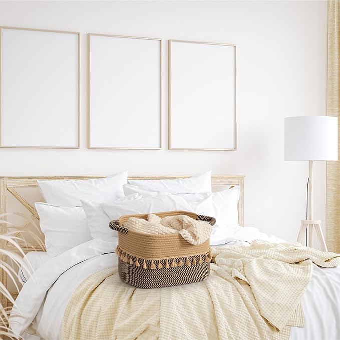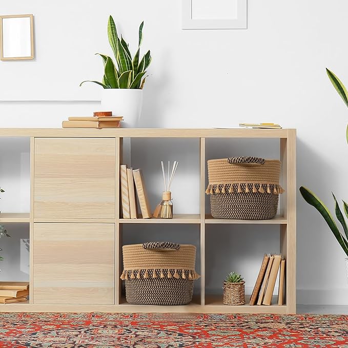 - Solid and durable: Our boho storage baskets feature sturdy handles that make them easy to move around. Rope baskets stand the rigors of daily use. Thanks to a flexible and resilient cotton material, they can bounce back into shape after being folded