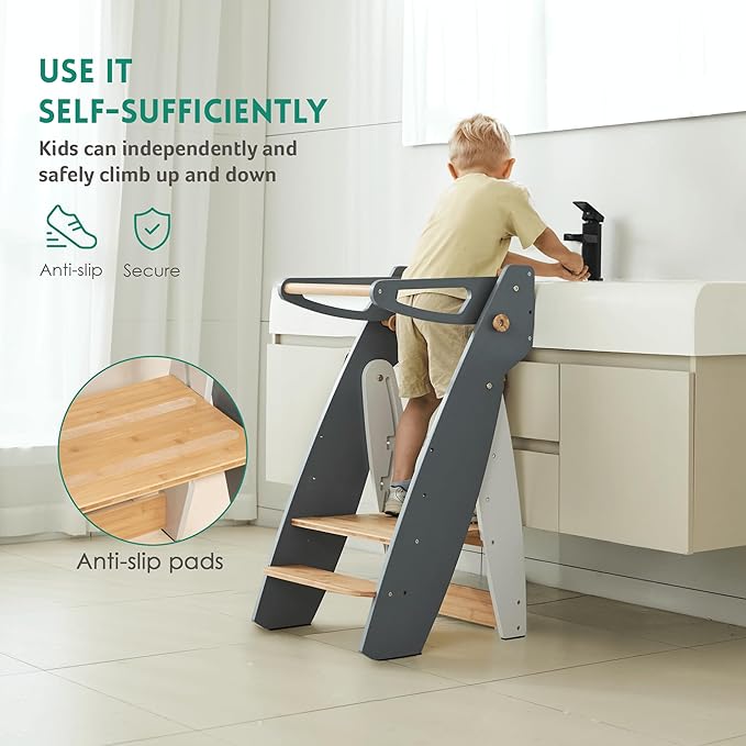 - 【Multipurpose Learning Tower】Not only transforms your kitchen into a fun learning space that fosters your child’s interest in cooking and baking but also makes it perfect for encouraging handwashing and teeth brushing in the bathroom. This versatility supports your child’s independence and accommodates their needs in various scenarios around the house, including serving as a convenient step stool for adults.