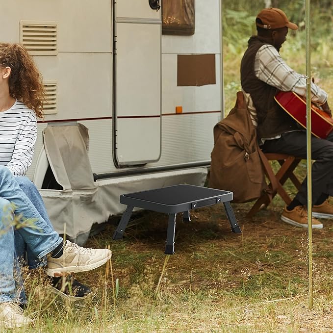 - 【Indoor Outdoor Use & Multifunctional】 Folding foot stool with a space-saving design is perfect for kitchen, bathroom, bedroom, office, utility room, dining room, garden, garage, or outdoor camping, RVs, fishing, etc. Folding one step ladder can be used as a kitchen step stool, bathroom step stool, bed step stool, closet step stool, office folding stool, or as a temporary seat for outdoor activities. Adjustable foldable stool is a must-have tool for every family