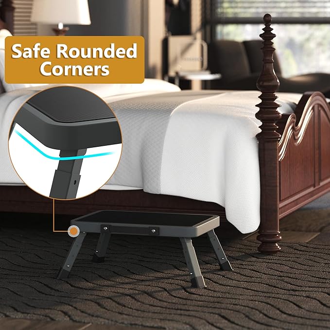 Folding Step Stool for Adults Kids with Non-Slip Platform, Height-Adjustable Sturdy Metal Stepping Stool, Bed Steps for High Beds,Collapsible Foot Step Stool for Bathroom Bedroom Kitchen RVs,Dark Gray
