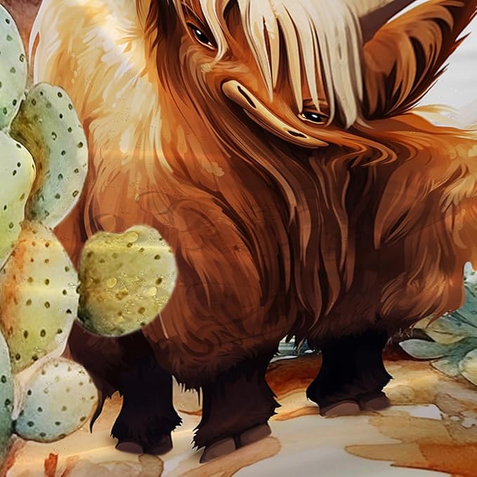 AILONEN Yak Shower Curtain Set, Desert Cactus Yak Polyester Waterproof Shower Curtain,Watercolour Sunset Warm Yellow Cloth Bath Curtain Set with Plastic Hooks,72" Wx78 H