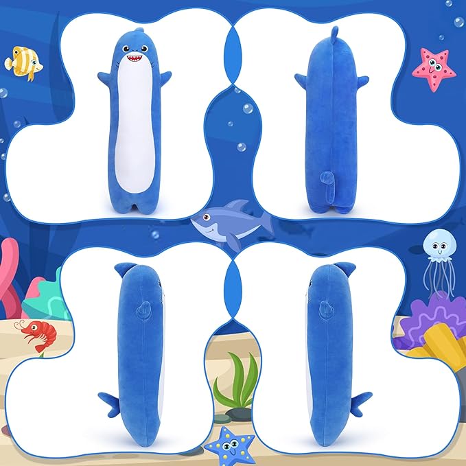 - 【Kawaii Large Plush Shark】This long shark pillow have 2 sizes:20 inches and 33.5 inches,it is a cute blue shark, making it an ideal plush companion. Whether in a room or living room at home, in a company office or lounge, or at a party, it is an ideal choice for kids over 3 years old, adults, or the elderly. Plush pillows are also easy to clean, just dry them in a well ventilated area or use a machine drum for drying.