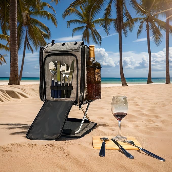 Backpack Cooler Insulated Leak Proof 20 Cans, 2 Ice Packs for Keeping Cool, Collapsible Support Stand with Rotary Bottom Tray for Rotate 360°, Cup Holder Cutlery Set for Camping Lunch
