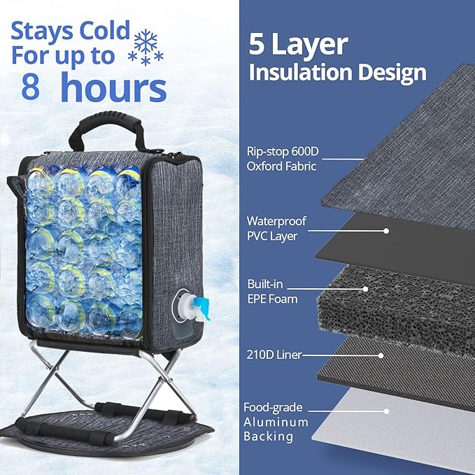 - LARGE CAPACITY: The cooler bag come with a 4L large capacity wine container can be used to store wine, bear beverages,etc. That means the cooler bag can hold 20 cans (330ml) bear or 4L wine. Its high-density waterproof exterior ensures durability in all weather conditions, making it ideal for work, camping, travel, picnics, beaches, cycling, and hiking.