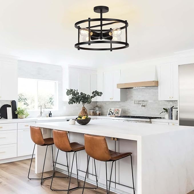 16" Semi Flush Mount 4-Light Industrial Ceiling Light, Black Chandelier for Kitchen, Dining Room, Entryway, Bedroom, Living Room