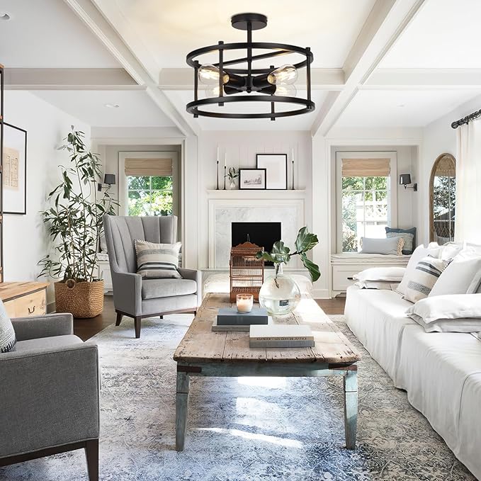 - Dimensions&Versatile Bulb Compatibility: The kitchen light fixture measures 16.53 inches in length and 11.41 inches in height, perfectly sized to make a statement in any room..The black ceiling lights for living room is designed for safety and energy efficiency, accommodating four E26 lamp bases and supporting up to 60W bulbs. It is compatible with LED, CFL, and dimmable Edison bulbs, offering flexibility in lighting choices (note: bulbs are not included).
