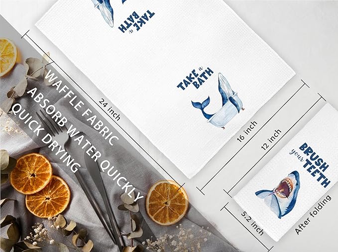 Shark Kids Bathroom Decor Sets of 4 - Shark Towels for Kids Bathroom, Shark Kids Bath Towels 16x24, Toddler Boys Girls Bathroom Decor, Wash Your Hands Bathroom Decor, 16x24