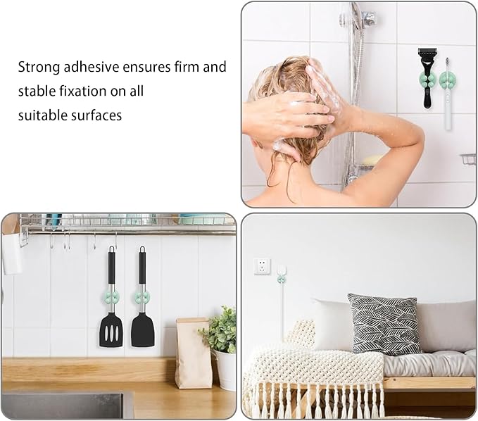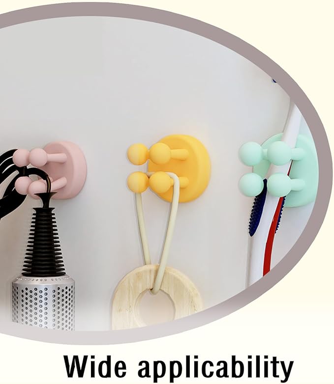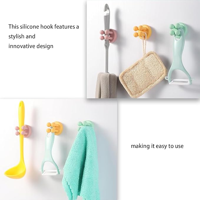 - Versatile Usage: These silicone hooks with strong adhesive pads can firmly secure accessories onto smooth surfaces like marble, desks, plastics, woods. Perfect for kitchens, bathrooms, offices, bedroom walls