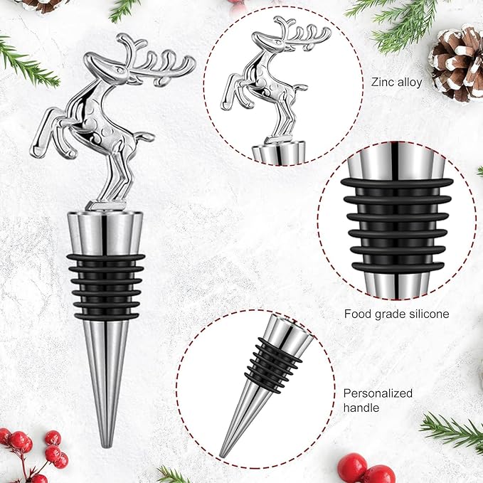 - 【Wine Bottle Stoppers For Christmas Decor🦌】:Wine Bottle Corkers adopt Christmas elements with strong Christmas style, adding Christmas atmosphere to your bottle with this wine stoppers set will be ideal choices for Christmas decorations.