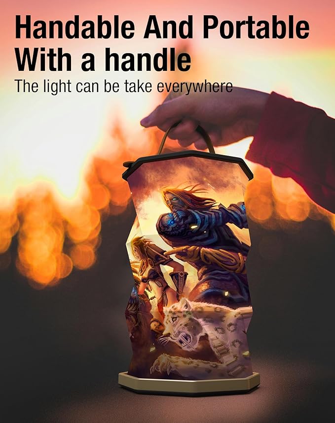 Battery Operated Lamp with Handle, Rotating Folding Lamp, Warcraft Portable Light, Folding Paper Lantern for Home, Office, Living Room