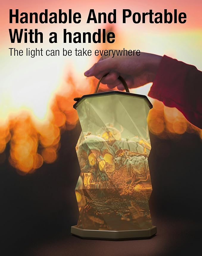 Battery Operated Lamp with Handle, Rotating Folding Lamp, Skull Portable Light, Folding Paper Lantern for Home, Office, Living Room