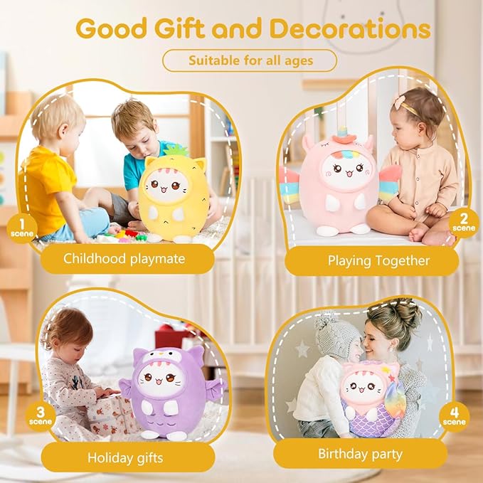 Cute Plush Pineapple Cat Stuffed Animal Pillow, 8" Soft Kawaii Kitten Plushie with Pineapple Outfit Gift for Kids