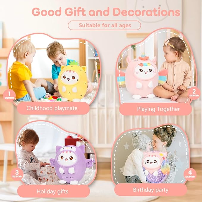 Cute Plush Mermaid Cat Stuffed Animal Pillow, 8" Soft Kawaii Kitten Plushie with Mermaid Outfit Gift for Kids