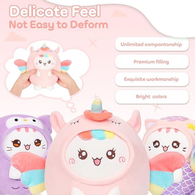 Cute Plush Unicorn Cat Stuffed Animal Pillow, 8" Soft Kawaii Kitten Plushie with Unicorn Outfit Gift for Kids