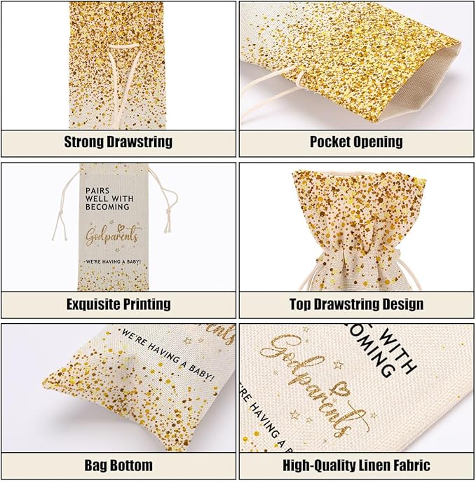 - Premium Material: Our wine gift bag is made of high-quality linen fabric, which is durable and reusable, reducing the impact on the environment. Good quality, strong support and safe enough to protect and hold wine or champagne. There is a drawstring design at the opening for easy opening.