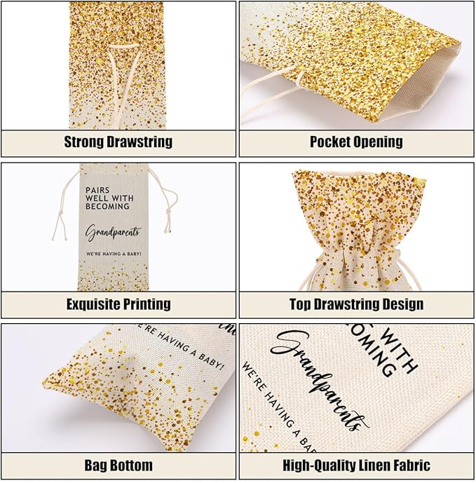 Pregnancy Announcement Wine Bag Grandparents Baby Announcement First Time Grandma Gifts for Women Men Coworker Grandpa Grandmother Bestie Congratulations Wine Bags