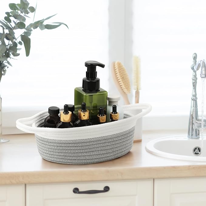 - 【5-Piece Rope Basket for Organizing Storage】This set of baskets is divided into five sizes, super small 9.2 * 3.9 inches for keys, sunglasses, lipstick, small 9.6 * 4.1 inches for remote control, baby products, medium 10.2 * 4.1 inches for wallets and kitchen supplies, large 11 * 4.5 inches for fruits, snacks, toys, etc., and super large 11.4 * 4.7 inches for various cosmetics, clothes, etc.