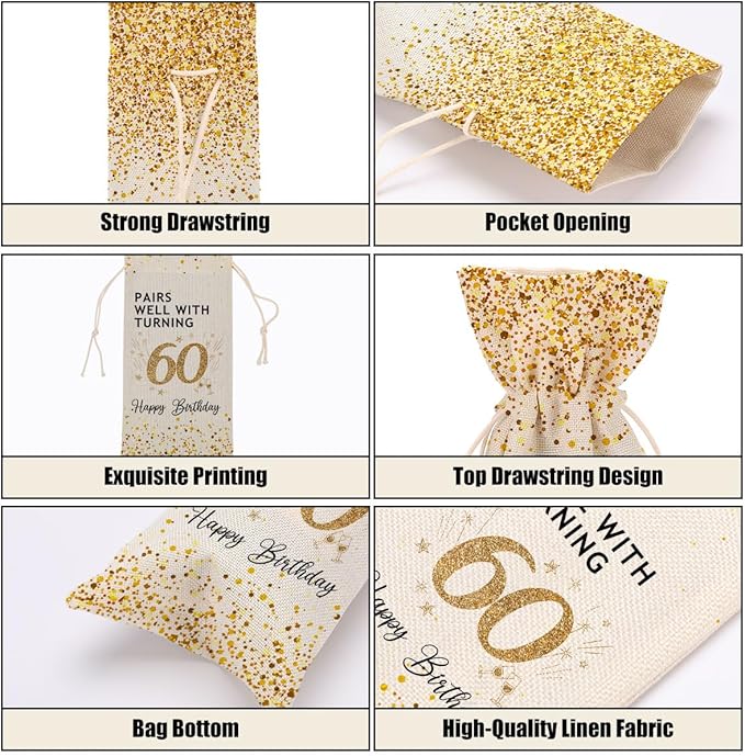 60th Birthday Decorations for Women Wine Bag 60th Birthday Gifts Ideas 60th Birthday Party Favors for Men Coworkers Lady Friend Bestie Him Anniversary Wine Bags