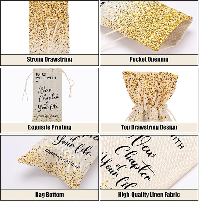 - Perfect Design And Size: Our wine bottle gift bags are 14.2 x 5.5 inches, can hold red wine bottles or champagne bottles, drawstring design makes it easy for you to put in and take out the wine bottles. Tighten the drawstring to protect your bottle from exposure. Can enhance the elegance and novelty of supplies and decorations for various party occasions. This is a unique gift for men, women, mom, colleague, grandma, friend, sister, bride, bridesmaid, father, groom.