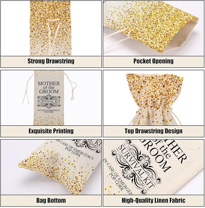 - Premium Material: Our wine gift bag is made of high-quality linen fabric, which is durable and reusable, reducing the impact on the environment. Good quality, strong support and safe enough to protect and hold wine or champagne. There is a drawstring design at the opening for easy opening.