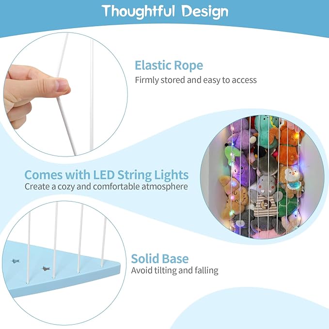 - Practical & Decorative: This stuffed animal wall holder comes with LED string lights(19.7 inches 50cm, requires 3 batteries - not included), which is great for display and store cuddly plush toys. Light can create a cozy and comfortable atmosphere, kids will be more relaxed.