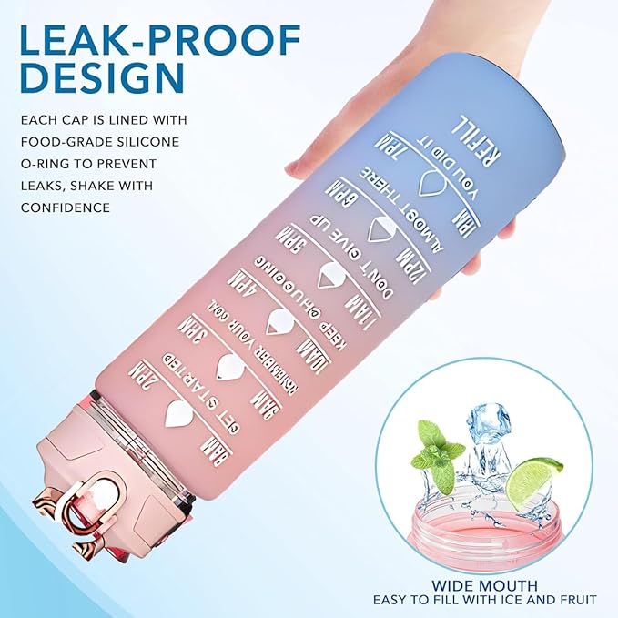 Generic Drinking Water Bottles Fitness Sports With Time Marker, 900 ml, Multiple Colors, Motivational Drinking Bottles Drinking Sports Water Bottle for Fitness, Gym & Outdoor (Pink+Purple), XH-2081