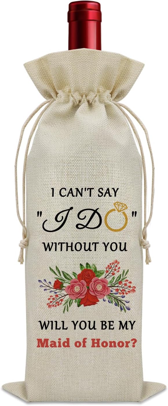 Maid of Honor Gifts Wine Bag Maid of Honor Proposal Gifts Bridesmaid Gifts for Wedding Day Wine Bottle Decoration Bag Bridal Shower Gifts for Bridesmaids Wine Accessories Gifts for Wine Lovers