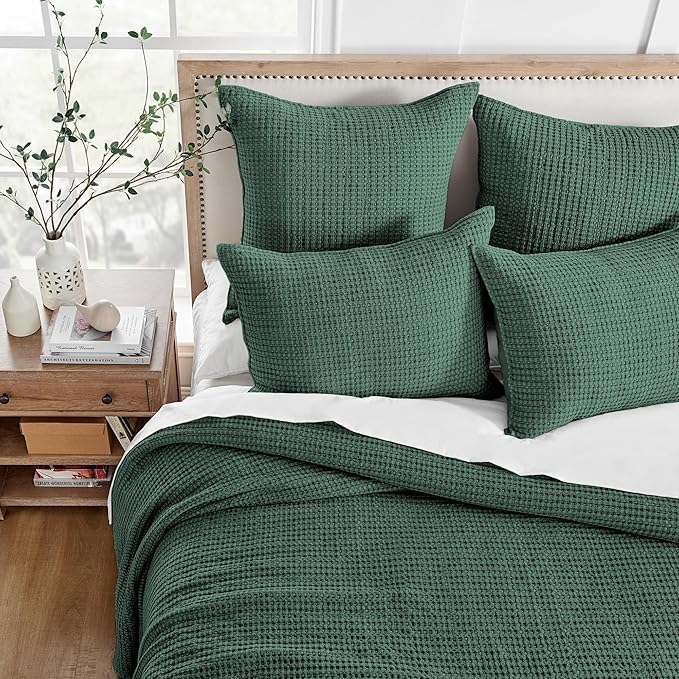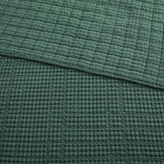 Levtex Home Mills Waffle Twin Bedspread Set (84x104in) with 1 Pillow Sham (26x20in) - Forest Green - 100% Cotton Twin Size Bedspread Set - Lightweight, Soft, Pre-Washed