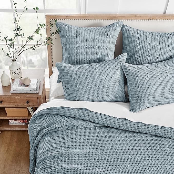 - Timeless Waffle Texture. This bedspread full size features a classic waffle weave on the front for a tactile, textural look, backed with a smooth coordinating microfiber fabric. Designed to bring tactile dimension and understated elegance to your space—ideal for contemporary, coastal, or minimalist bedrooms.