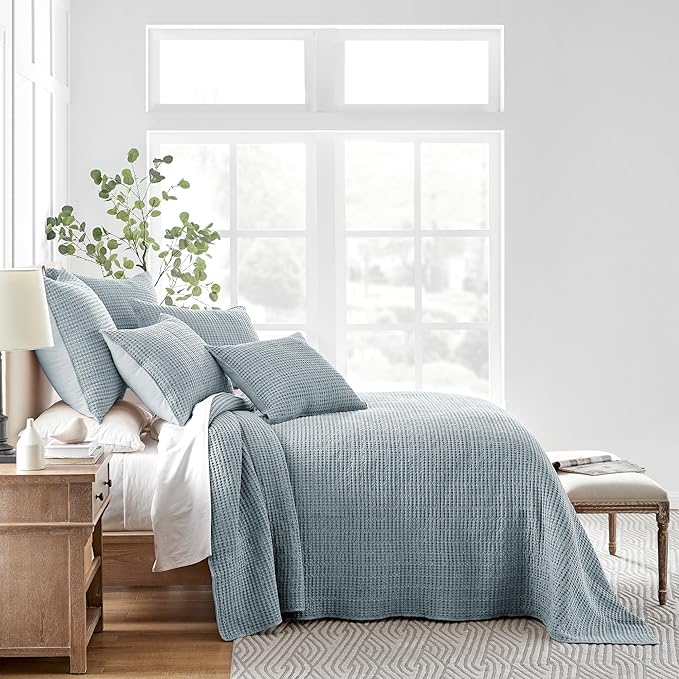 - Versatile Designer Styling. Refresh your bedroom with this timeless full bedspread set, styled in a relaxed solid hue and crisp waffle texture. The oversized drape creates a finished, luxurious look without the need for a bed skirt. Seamlessly complements modern, Hamptons, coastal, or transitional interiors. Designed for discerning home decorators seeking a spa-inspired aesthetic or hotel-style sophistication. A favorite of gift buyers, luxury seekers, home stylists, and homeowners alike.