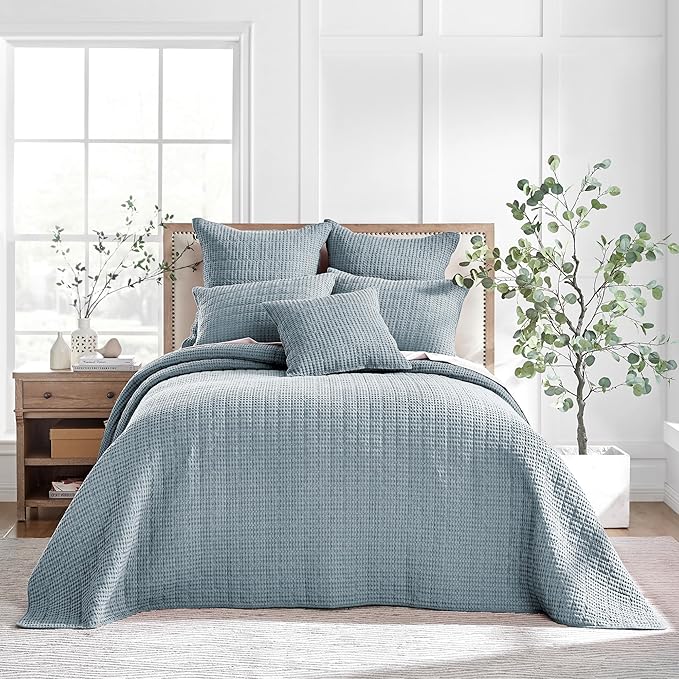 Levtex Home Mills Waffle King Bedspread Set (122x106in) with 2 Pillow Shams (36x20in) - Chambray - Cotton Waffle King Size Bedspread Set - Soft, Pre-Washed