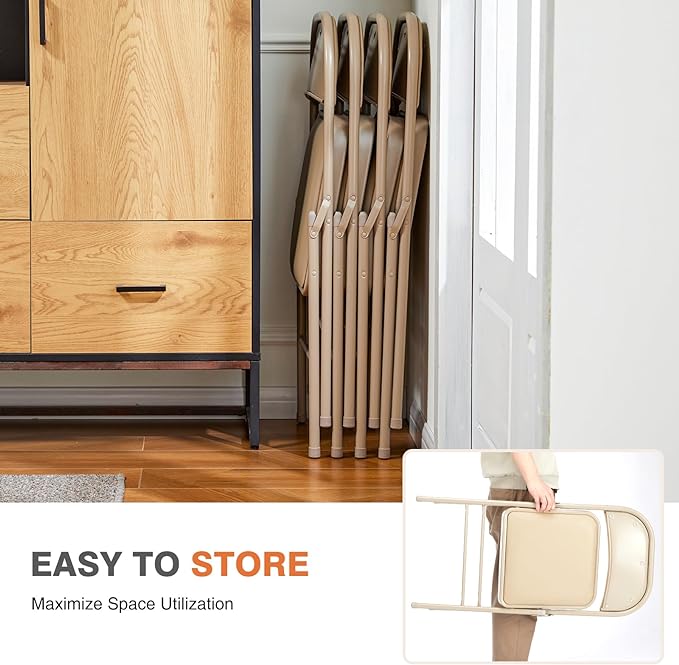 - 【Superior Comfort】The folding chair's backrest and seat cushion feature high-density sponge padding, providing exceptional comfort for you or your guests. The premium quality PU leather used gives an excellent touch and provides an impressive sitting experience, making this chair soft and comfortable yet durable and easy to maintain.