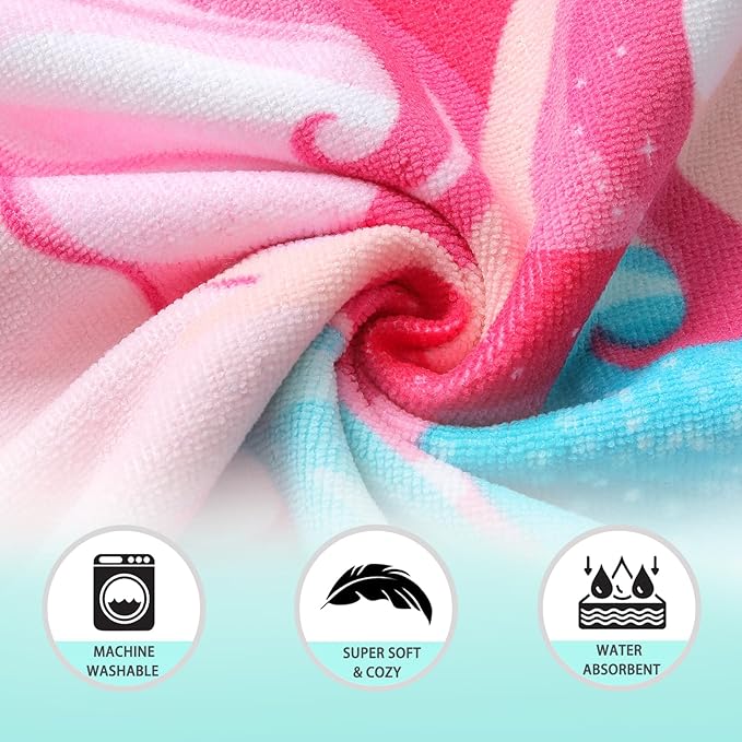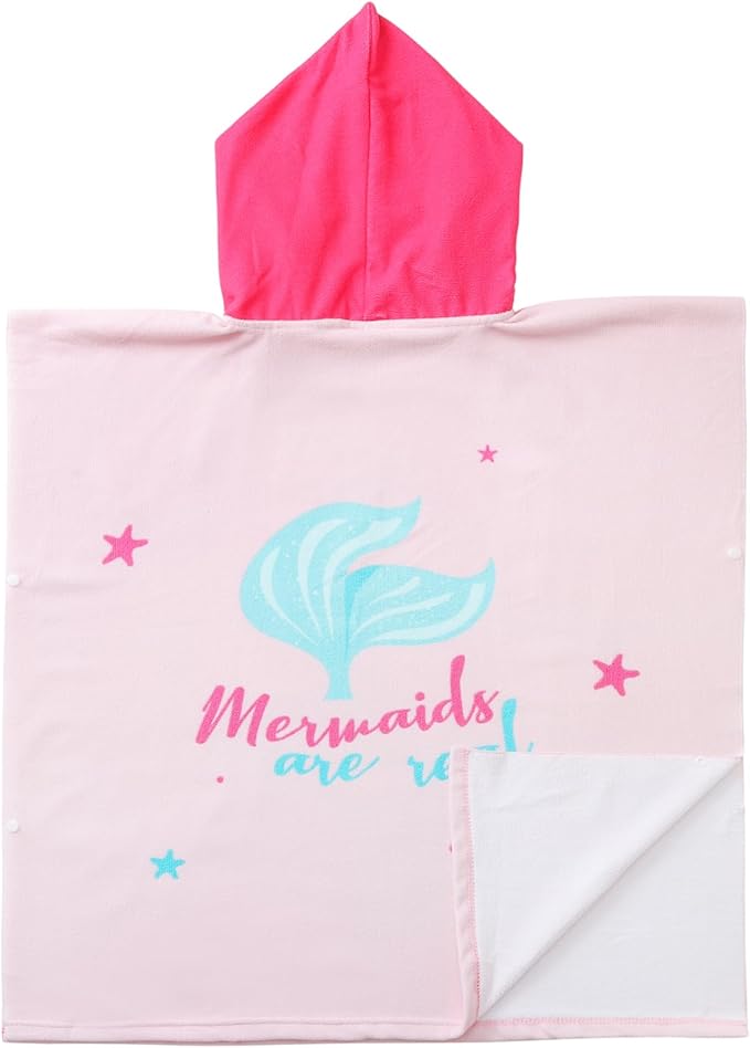 NovForth Kids Beach Towel for Boys Girls, Pink Mermaid Hooded Bath Towel Wrap, Toddler Pool Towel with Hood