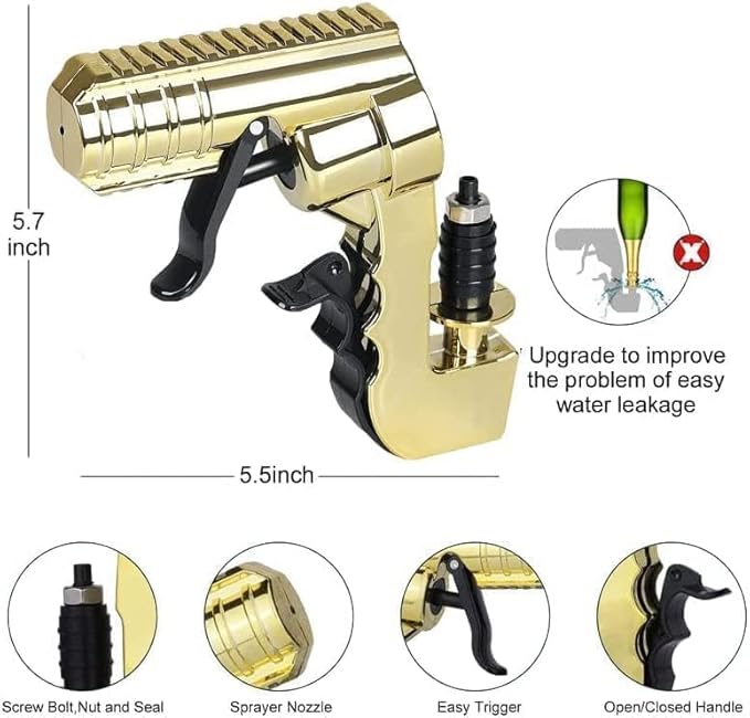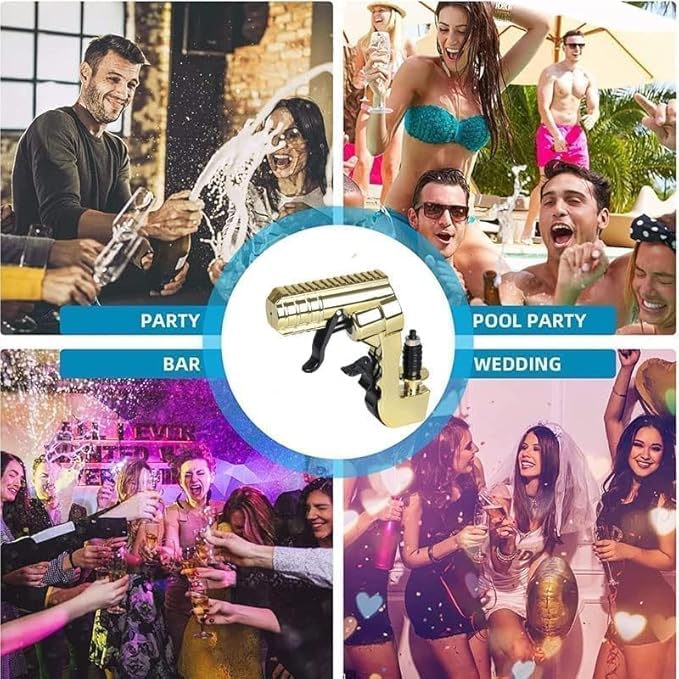 - Pressurized Champagne Gun:Solve the problem of not spraying without air pressure, this champagne gun can continue to spray without air pressure until the champagne is completely sprayed! Therefore, it can be applied to most alcoholic beverages including champagne, coke and mineral water
