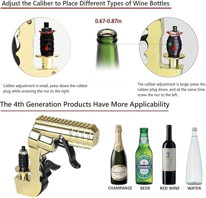 Champagne Gun, 4TH Generation Champagne Gun Shooter, Fun beer gun shooter, Adjustable Wine Stopper Gun Shooter, Suitable for Wedding, Club, Bar, Birthday, Beach, Family Gathering,Christmas
