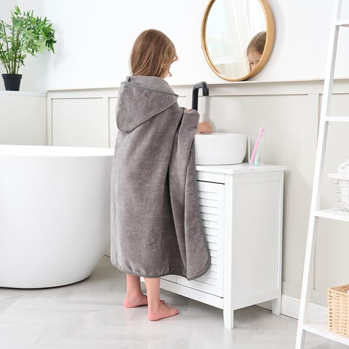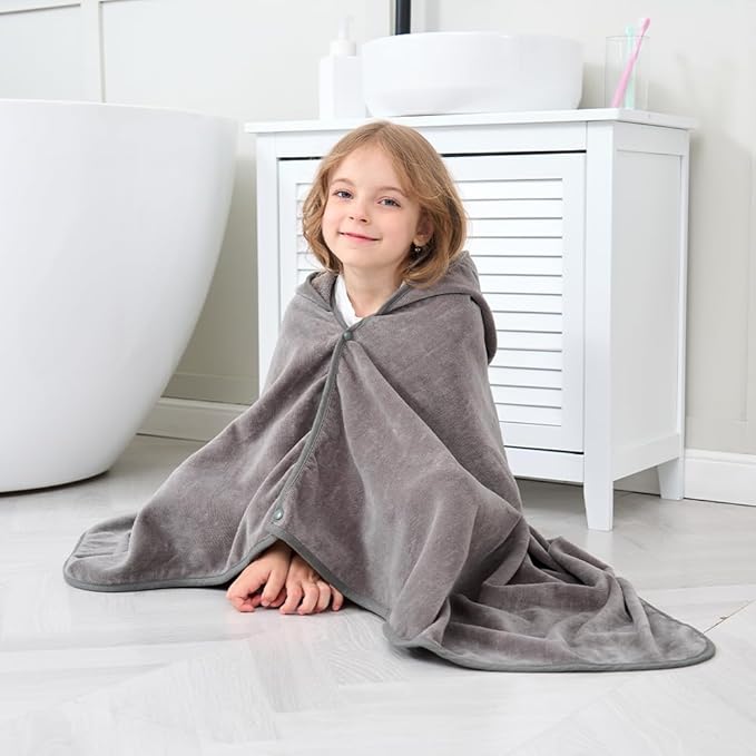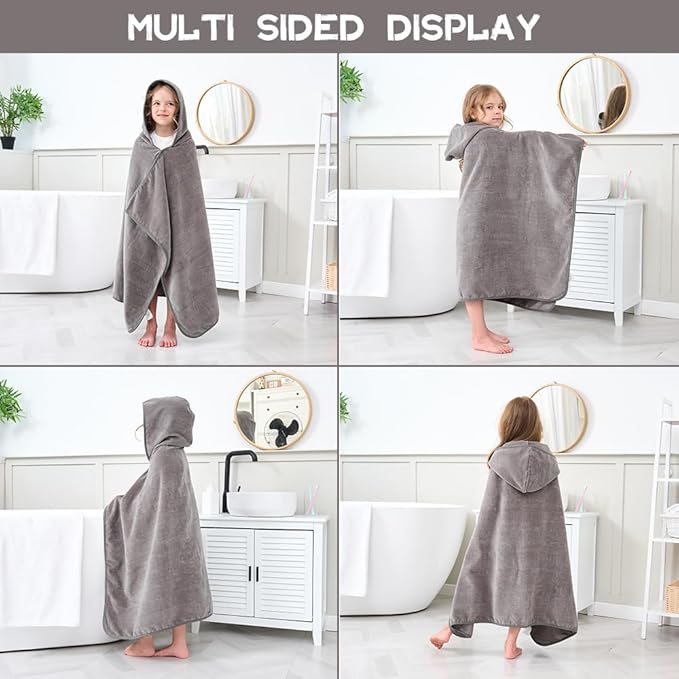Hiturbo Kids Hooded Bath Towel: 100% Cotton Soft Thick Absorbent Towels Wrap - 50"x30" Shower Beach Pool Wearable Blanket for 3-12 Yrs Boys Girls - Gray