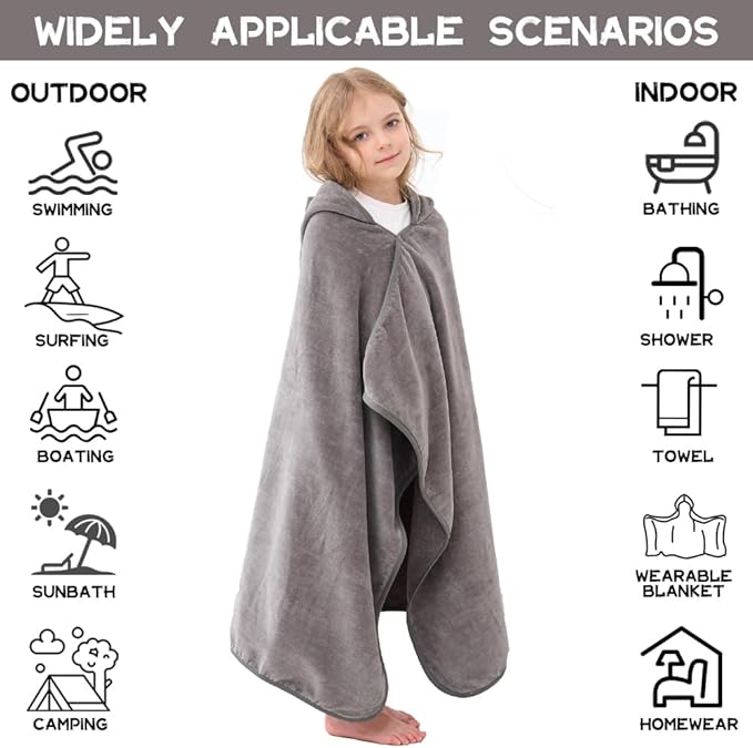 - Multiple Uses: This practical and durable towel hoodie is suitable for both indoor and outdoor use. Whether at home, the beach, or the pool, both parents and kids will love it.