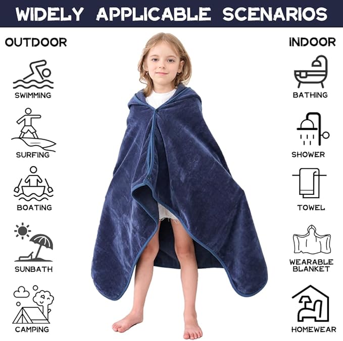 - Multiple Uses: This practical and durable towel hoodie is suitable for both indoor and outdoor use. Whether at home, the beach, or the pool, both parents and kids will love it.