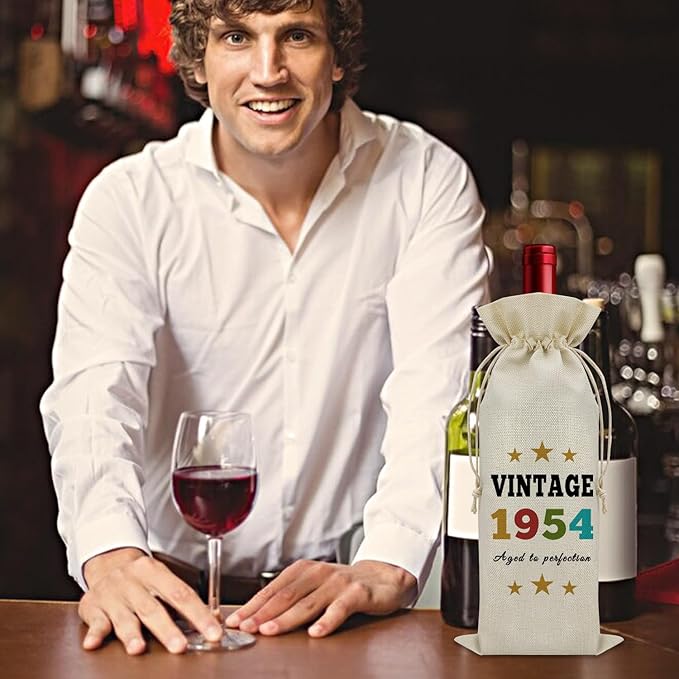 Sazuwu Vintage 1954 Gifts for Women Men Wine Bag Happy 70th Birthday Mom Gifts 70 Year Old Birthday Gifts for Dad Wine Accessories Gifts for Wine Lovers Turning 70 Gifts for Grandma Grandpa
