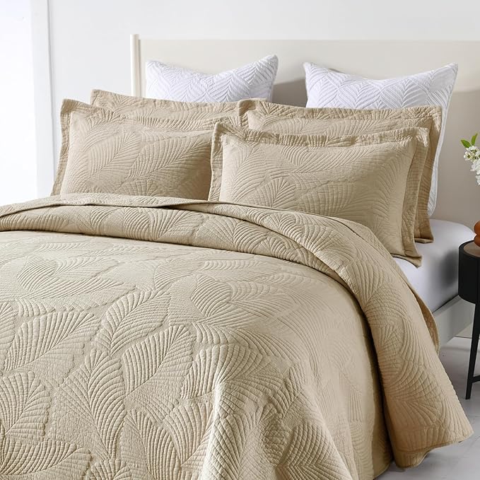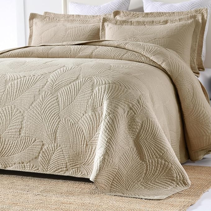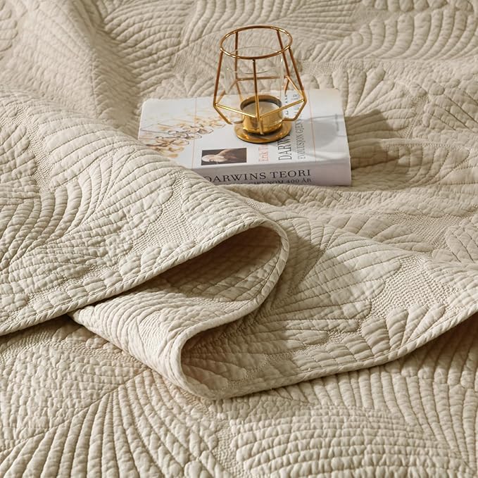 - ★【Unique Design】--Add classic and elegance to your bedroom with the queen size quilt that comes in palm leaves patterns, offering your room a homey serene look