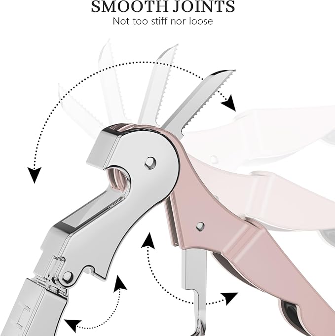 - MULTITOOL WINE OPENER: Made from 420 stainless steel and featuring a durable zinc alloy handle. It includes a classical double-hinged design that helps you pull the cork from the bottle with no effort. Featuring a built-in foil cutter and bottle cap opener, everything you need to open a bottle of wine or beer is conveniently and easily available to you in one tool