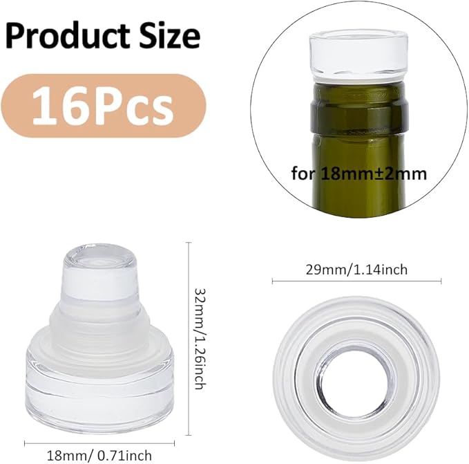 - 16 Pcs: You will get 16pcs glass wine stopper,about 32mm long,15-29mm in diameter,enough to cover your replacement needs,fits most wine bottles,sizes that fit most wine bottles can help you save time.