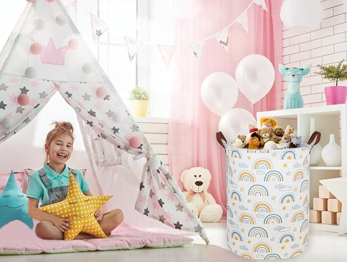 Kids Laundry Hamper,Rainbow Laundry Basket Collapsible Girls Storage Baskets for Home Decor,Office,Toy Organizer,(Bule Rainbow)