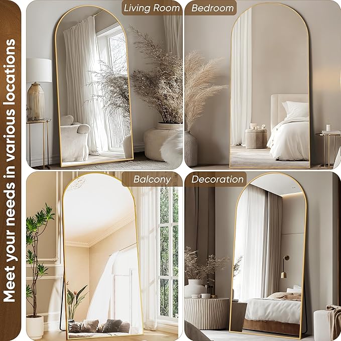 - 【Arched Design】The floor mirror has an arched top. The mirror is all surrounded by aluminum alloy. The frame has texture very thin and light, you can move it easily. It is very conscious in any space and makes your room look classy.